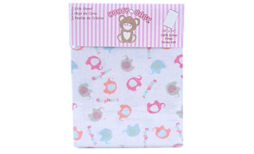 Honey Baby 100% Cotton Girls Fitted Crib & Toddler Bed Sheet (Elephant Pink) by HONEYBABY