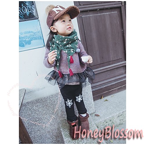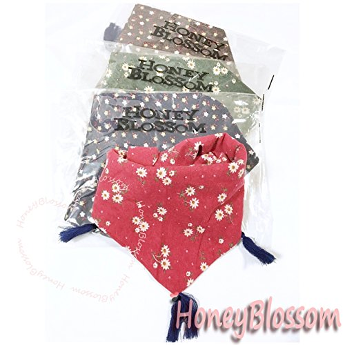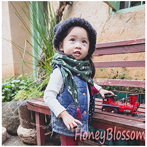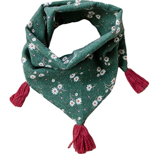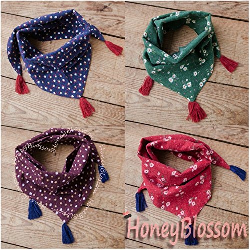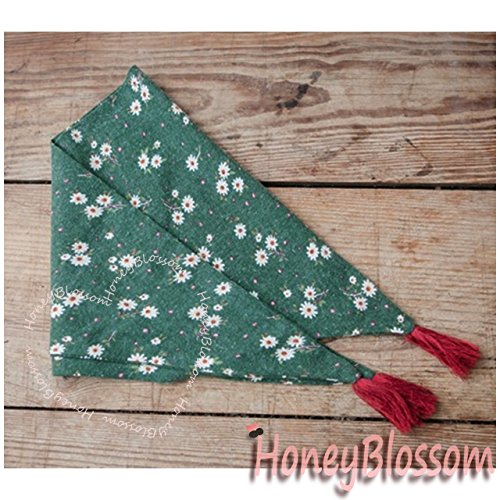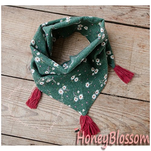 HONEY BLOSSOM キッズ & ベビー 小花柄 タッセル スカーフ 子ども用 バンダナ ストール m222 グリーン