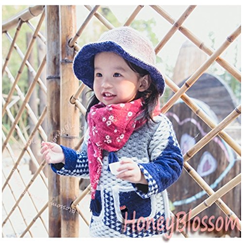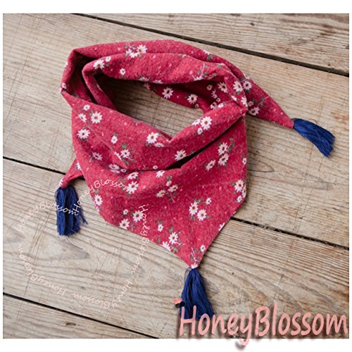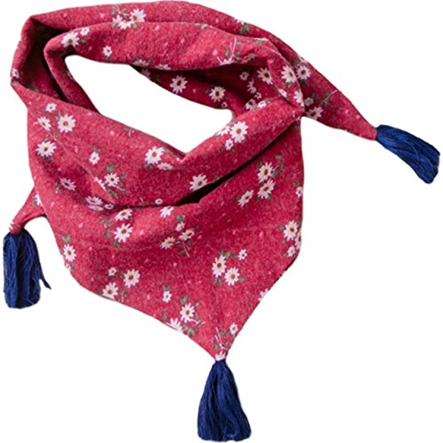 HONEY BLOSSOM ベビー & ガールズ 【 小花柄 キッズ ストール 】 子ども用 タッセル スカーフ バンダナ マフラー ファッション 小物 92 × 34 cm m222 レッド
