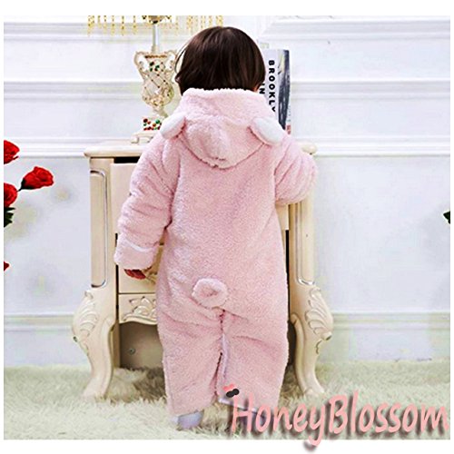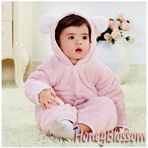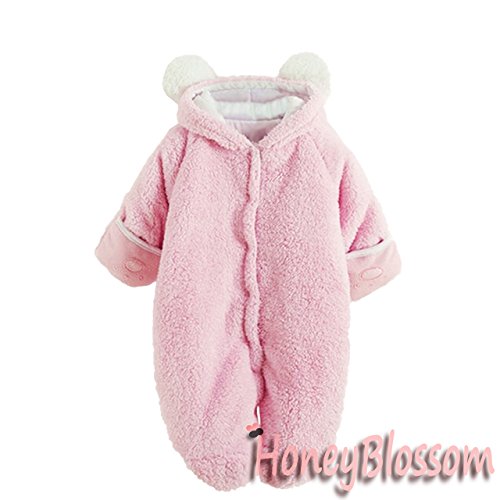 赤ちゃんの防寒、保温に、かわいい着ぐるみタイプのフードつきカバーオールです。