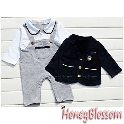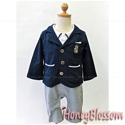 (ハニーブロッサム) HONEY BLOSSOM 七五三 初節句 ベビー スーツ ブレザー 付き ロンパース 赤ちゃん 楽ちん 柔らか フォーマル ジャケット & オーバーオール 風 カバーオール セット 結婚式 卒業式 発表会 お祝い 記念撮影 お食い初め bl80