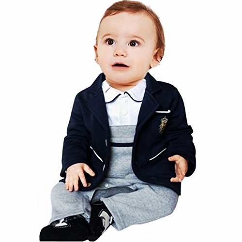 - 「 重ね着風カバーオール + 紺ブレジャケット 」 で、カッコイイスーツ姿 ♪ ベビーボーイズの 上品 フォーマルセット です。柔らか綿素材で 赤ちゃんにも優しい着心地。オムツ替に便利な股下スナップデザイン。 お呼ばれの席や記念写真の撮影中などでも、赤ちゃんがご機嫌で過ごせそうです。 素材:綿100%