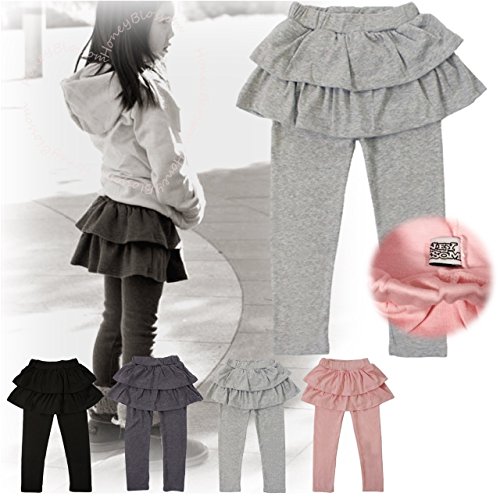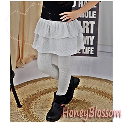 (ハニーブロッサム) HONEY BLOSSOM ベビー & ガールズ ボトムス 【 らくちん 可愛い 2段 フリル スカッツ 】 ふんわり スカート 付き レギンス 通園 通学 女の子 パンツ m038 lightgray 110
