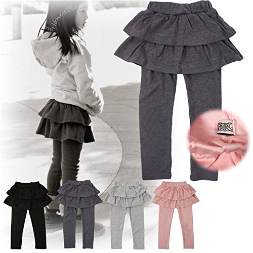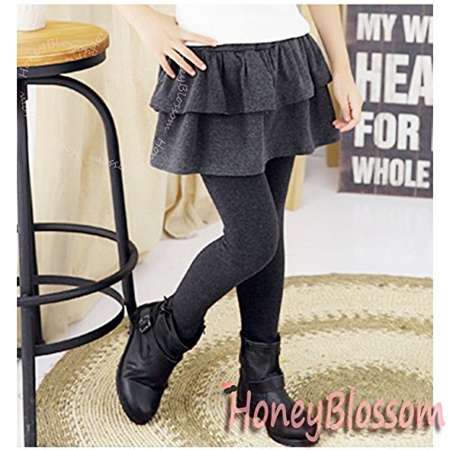 (ハニーブロッサム) HONEY BLOSSOM ベビー & ガールズ ボトムス 【 らくちん 可愛い 2段 フリル スカッツ 】 ふんわり スカート 付き レギンス 通園 通学 女の子 パンツ m038 darkgray 110