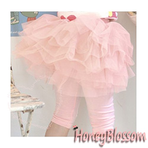 HONEY BLOSSOM ベビー & ガールズ 【 ふんわり チュチュ スカッツ 】 チュール スカート 付き 柔らか 綿 七分丈 女の子 レギンス パンツ m087 (80, ピンク)