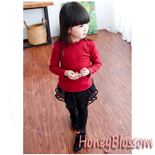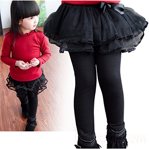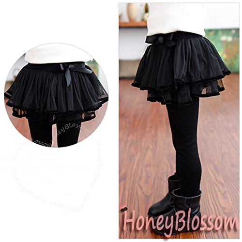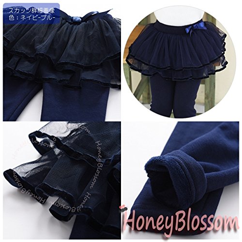 HONEY BLOSSOM ふんわり 2段 チュール スカート付き 裏起毛 レギンス スカッツ m238 black 100