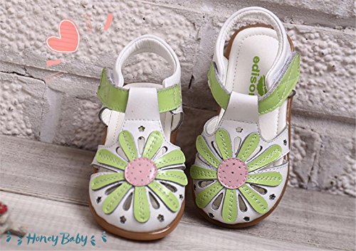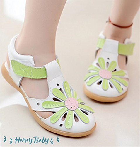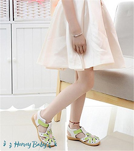 Honey baby 春 夏 女の子 子供靴 キッズ シューズベビー おしゃれ 靴 子供シューズ マジックテープ ストラップ 靴裏まで 可愛い 花 模様 滑り止め 付き 女の子 シューズ お散歩 お出かけ や プレゼントに (18cm, ホワイト)