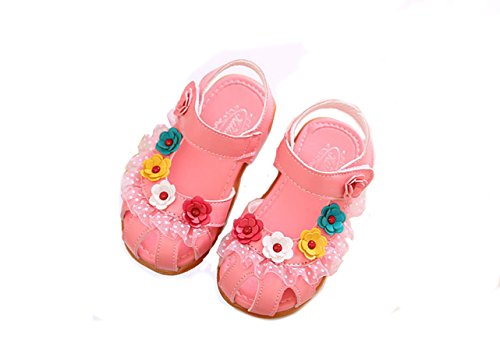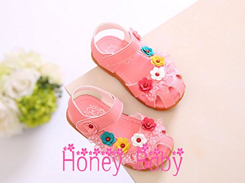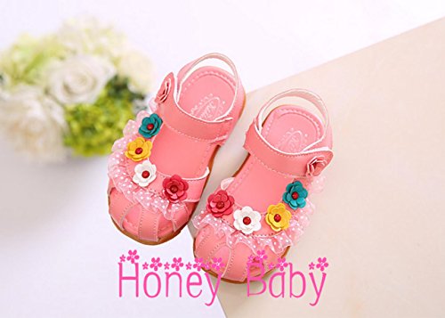 Honey baby ベビー 女の子 サンダル 子供靴 キッズシューズ ビーチサンダルつま先 保護 お花 モチーフキッズシューズ 女児用 マジックテープ 滑り止め お散歩 お出かけに (内寸18cm, ピンク)