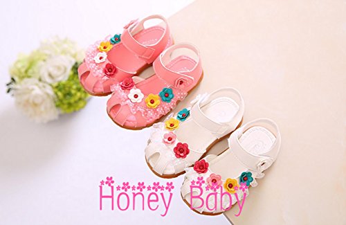 Honey baby ベビー 女の子 サンダル 子供靴 キッズシューズ ビーチサンダルつま先 保護 お花 モチーフキッズシューズ 女児用 マジックテープ 滑り止め お散歩 お出かけに (内寸13.5cm, ピンク)