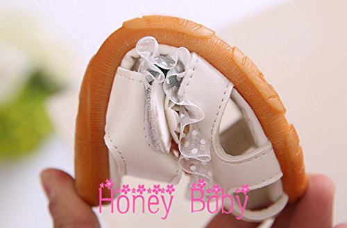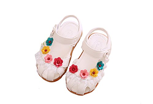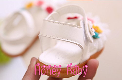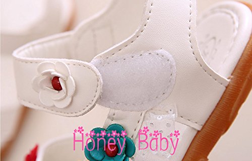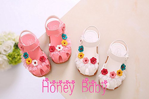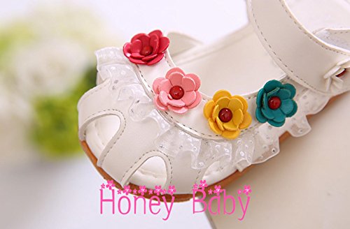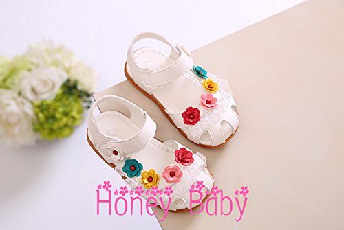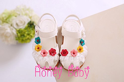Honey baby ベビー 女の子 サンダル 子供靴 キッズシューズ ビーチサンダルつま先 保護 お花 モチーフキッズシューズ 女児用 マジックテープ 滑り止め お散歩 お出かけに (内寸17.5cm, ホワイト)
