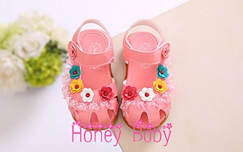 Honey baby ベビー 女の子 サンダル 子供靴 キッズシューズ ビーチサンダルつま先 保護 お花 モチーフキッズシューズ 女児用 マジックテープ 滑り止め お散歩 お出かけに (内寸17.5cm, ピンク)