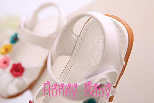 Honey baby ベビー 女の子 サンダル 子供靴 キッズシューズ ビーチサンダルつま先 保護 お花 モチーフキッズシューズ 女児用 マジックテープ 滑り止め お散歩 お出かけに (内寸14cm, ホワイト)