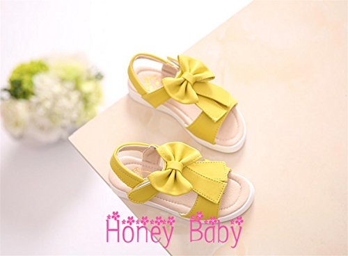 Honey baby キッズサンダル 女の子 サンダル 子供サンダル 子供靴 キッズフォーマル靴夏着 子供シューズ ドレス用 お出かけ 七五三 誕生日 結婚式 入園式 発表会 プレゼント 演奏会 花嫁介添人 (内寸19.3cm, イエロー)