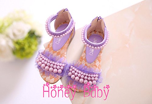 Honey baby ガールズ フォーマル靴 パール レース女の子シューズ ダンスシューズ フラットシューズ 女児 サンダル フォーマル 結婚式 発表会 お出かけ 通園 通学 プレゼント 夏 (内寸22cm, パープル)