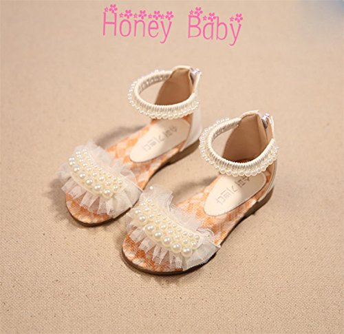 Honey baby ガールズ フォーマル靴 パール レース女の子シューズ ダンスシューズ フラットシューズ 女児 サンダル フォーマル 結婚式 発表会 お出かけ 通園 通学 プレゼント 夏 (内寸15cm, ホワイト)