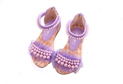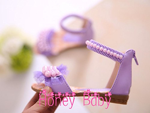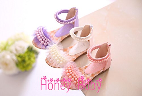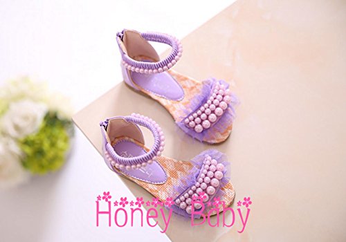 Honey baby ガールズ フォーマル靴 パール レース女の子シューズ ダンスシューズ フラットシューズ 女児 サンダル フォーマル 結婚式 発表会 お出かけ 通園 通学 プレゼント 夏 (内寸18.8cm, パープル)