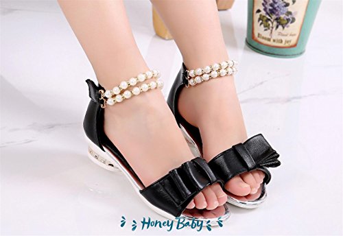 Honey baby ガールズ フォーマル靴 パール 女の子サンダル 女児サンダル ダンスシューズ フォーマル 嬢様 ジュニア結婚式 発表会 お出かけ 通園 通学 プレゼント 夏 (内寸208cm, ブラック) [並行輸入品]