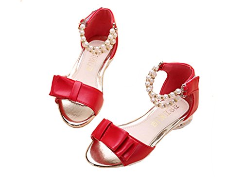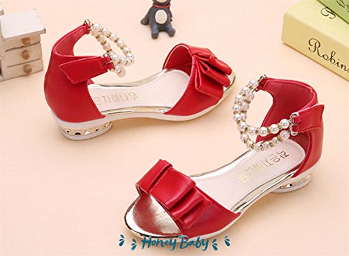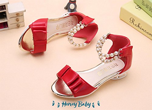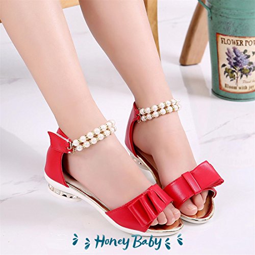 Honey baby ガールズ フォーマル靴 パール 女の子サンダル 女児サンダル ダンスシューズ フォーマル 嬢様 ジュニア結婚式 発表会 お出かけ 通園 通学 プレゼント 夏 (内寸19cm, レッド) [並行輸入品]