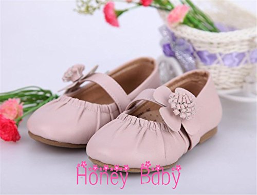 Honey baby 子供靴 ベビー シューズ キッズ ガールズフォーマル靴 キッズ ドレス シューズ ガール 花 七五三 誕生日 結婚式 入園式 発表会 プレゼント 演奏会 花嫁介添人 フラワーガール (内寸15.8cm, ピンク)