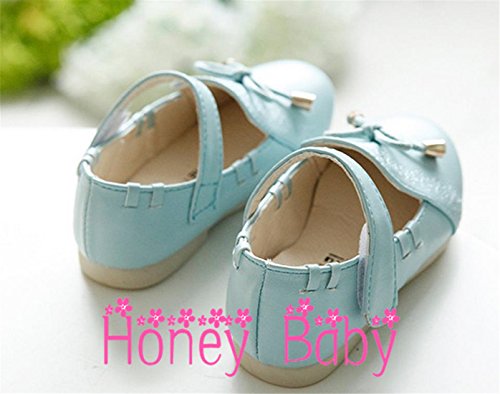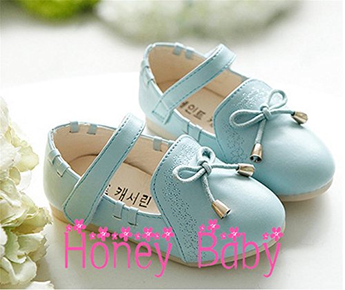 Honey baby 子供靴 ベビー シューズ キッズ ガールズフォーマル靴 子供シューズ ドレス用リボン キッズ ドレス シューズ ガール 花 七五三 誕生日 プレゼント 演奏会 花嫁介添人 フラワーガール (内寸13.5cm, ブルー)