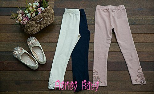 - 裾にシンプルなレースの刺繍がついた子供用レギンスです
