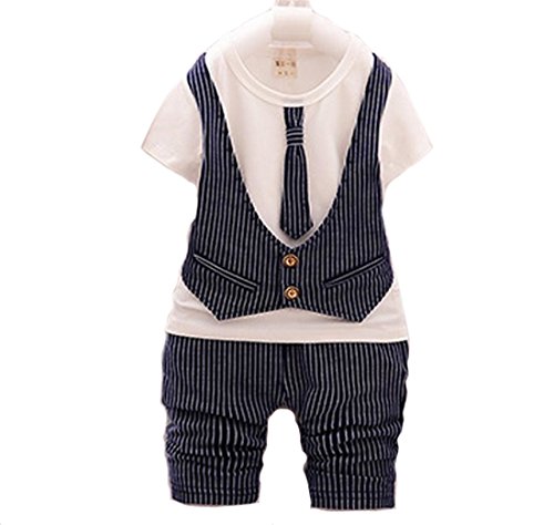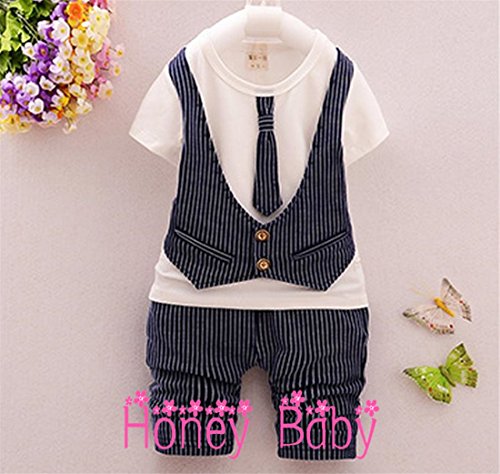 Honey baby ベビー服 スーツ チェック柄 ネクタイ付きTシャツ 上下2点セット 半袖 ベビー服 フォーマル 洋服 紳士風 男の子 結婚式 お正月 誕生日 お宮参り 七五三 記念日 出産祝い