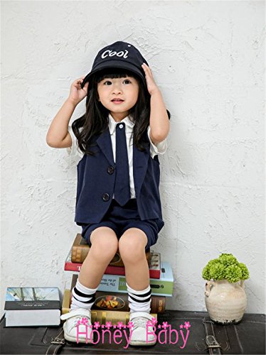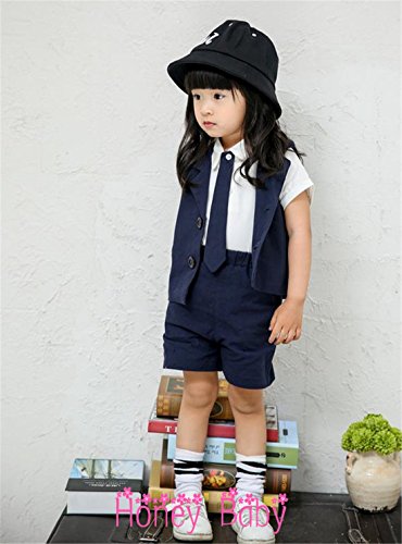 Honey baby 子供服 ベビー服 スーツ キッ ズ服 フォーマル 洋服 ネクタイ付きTシャツ+ベスト+半ズボン英国風 学園風 男の子 結婚式 お正月 誕生日 お宮参り 七五三 記念日 出産祝い