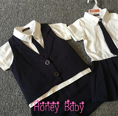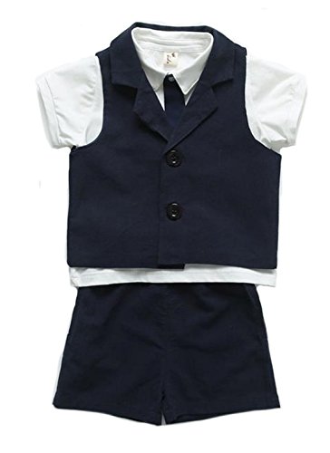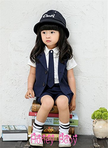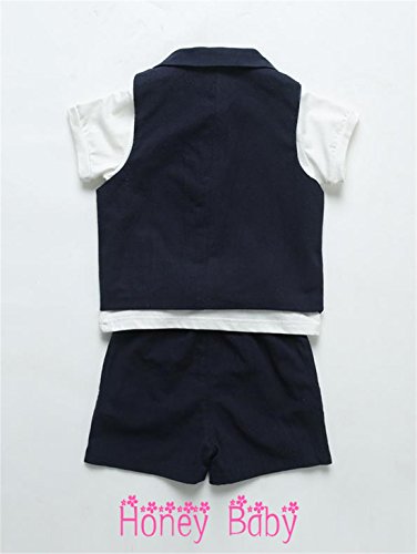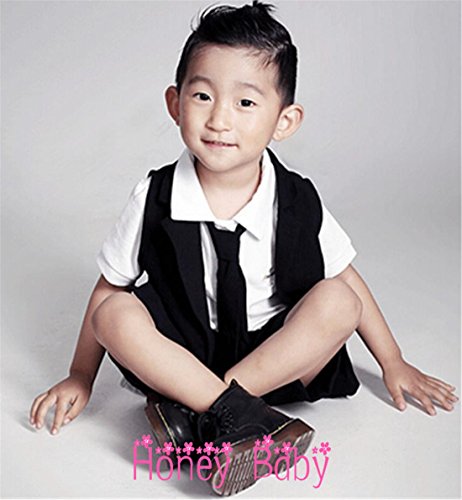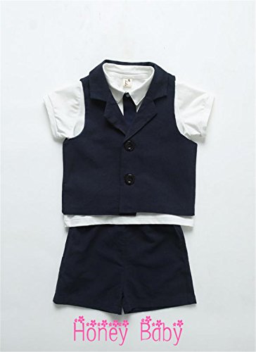 Honey baby 子供服 ベビー服 スーツ キッ ズ服 フォーマル 洋服 ネクタイ付きTシャツ+ベスト+半ズボン英国風 学園風 男の子 結婚式 お正月 誕生日 お宮参り 七五三 記念日 出産祝い