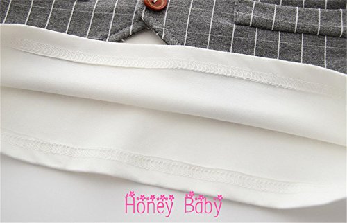 Honey baby 子供服 ベビー服 スーツ チェック柄 蝶ネクタイTシャツ 上下2点セット 半袖 ベビー服 フォーマル 洋服 紳士風 男の子学式 入園式 卒園式 結婚式 お正月 誕生日 お宮参り 七五三 記念日 出産祝い (100cm, グレー)