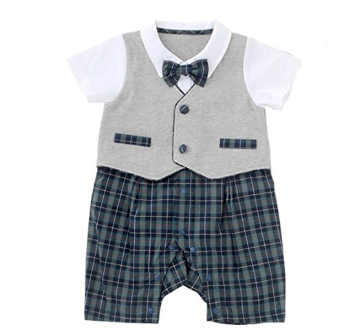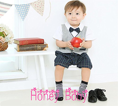 Honey baby ベビー服 男の子 スーツ 子供服 ロンパーススーツ ベビー服 ロンパース 新生児 紳士風 蝶ネクタ出産祝い 結婚式 お宮参り 七五三 記念日 (80cm, グレー)