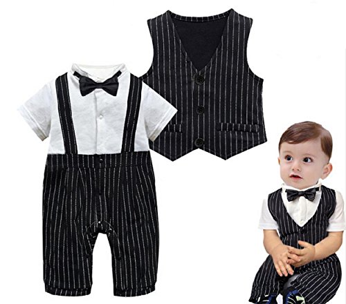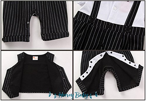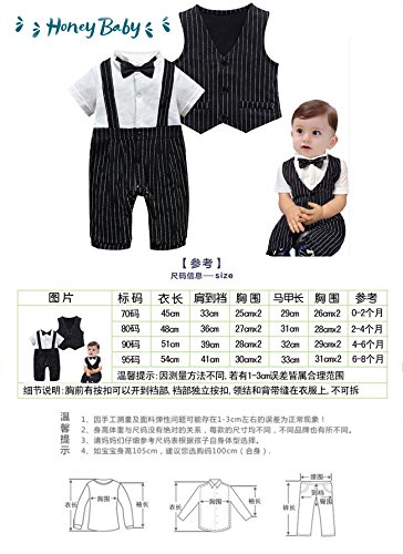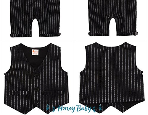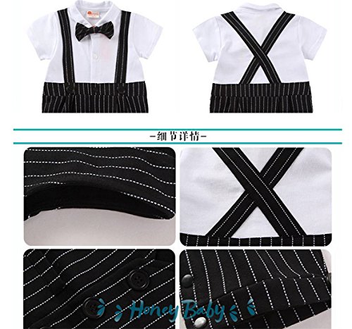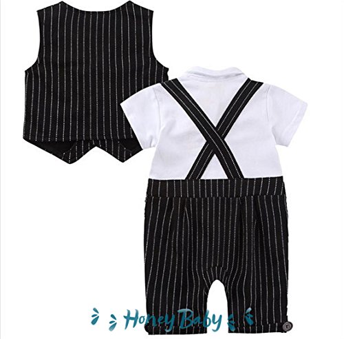 Honey baby 子供服 ベビー カバーオール ロンパーススーツ ベスト 半袖 ロンパース蝶ネクタイ 3点セット ベビー フォーマル 男の子 ブラック (90CM, ブラック)