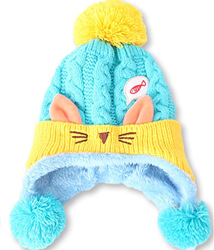 Honey baby 子供 ベビー 赤ちゃん ニット帽 帽子 ニットキャップ ニット帽 猫柄 女の子 男の子 赤ちゃん キッズ 子供用 防寒 出産祝いや、お誕生日 プレゼント 贈り物 冬 (ライトブルー)