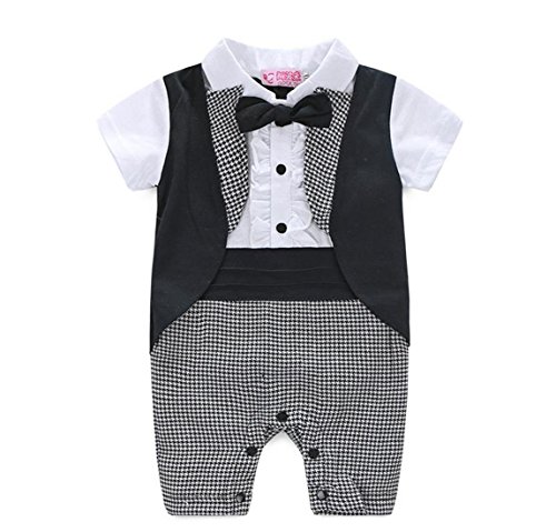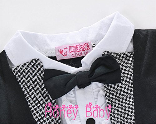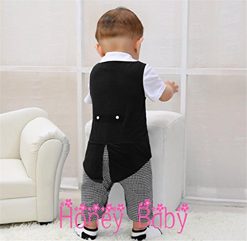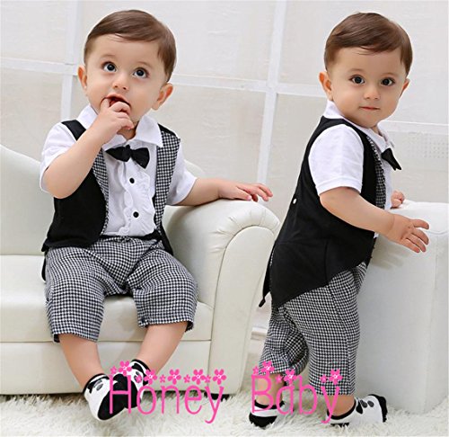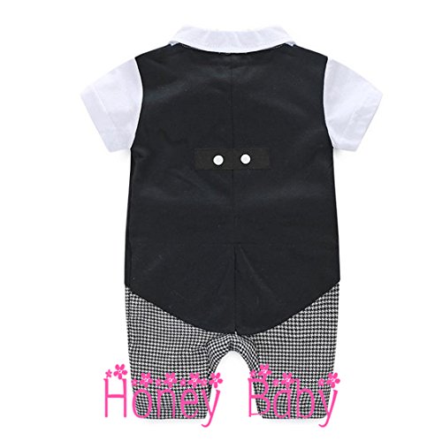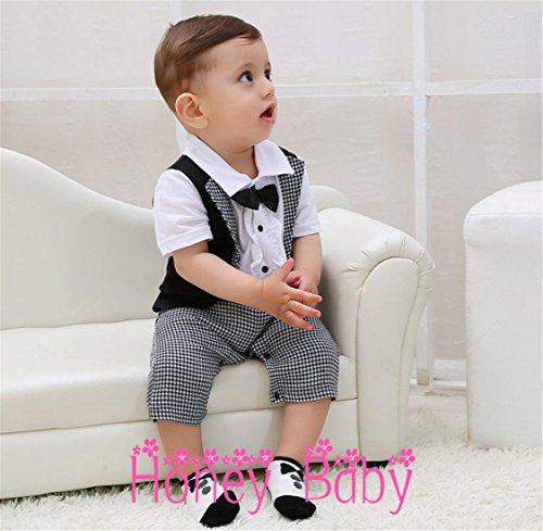 Honey baby 半袖 ベビー キッズ フォーマル スーツ ロンパース ネクタイ 子供 スーツ 七五三 子供服 新生児 出産祝い 結婚式 誕生日 お宮参り 七五三 記念日 初節句 お祝い (95cm)