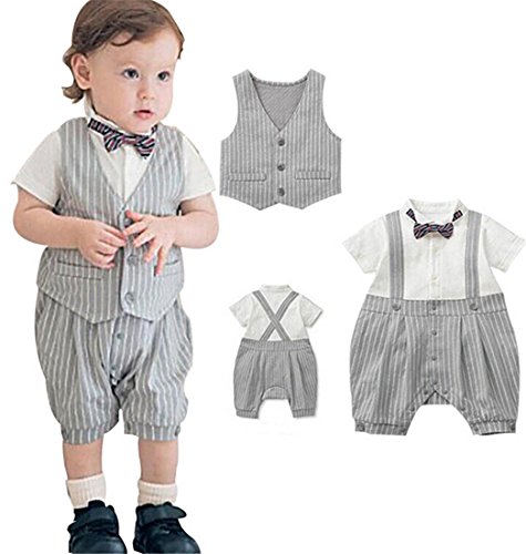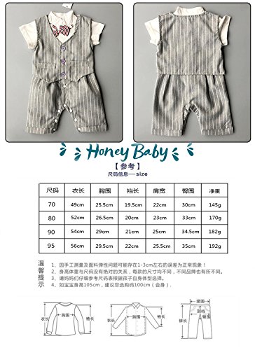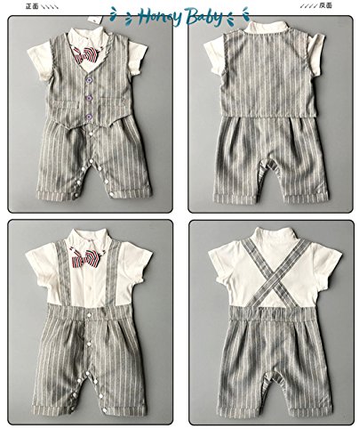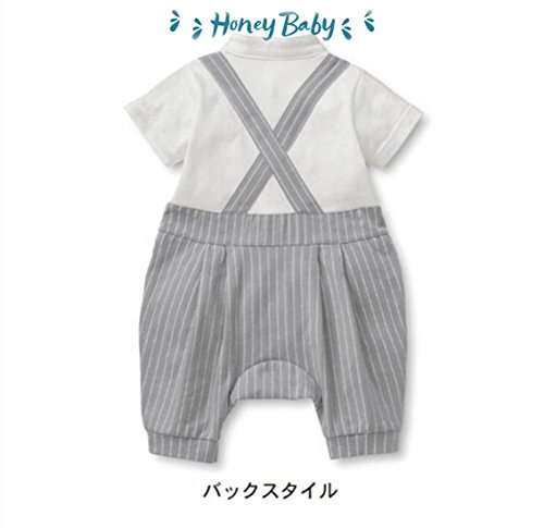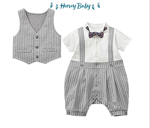 Honey babyベビー カバーオール ベビー服 ベスト付き スーツ ベビーフォーマル セレモニーロンパース 結婚式 産祝い プレゼントグレー (80cm, グレー)