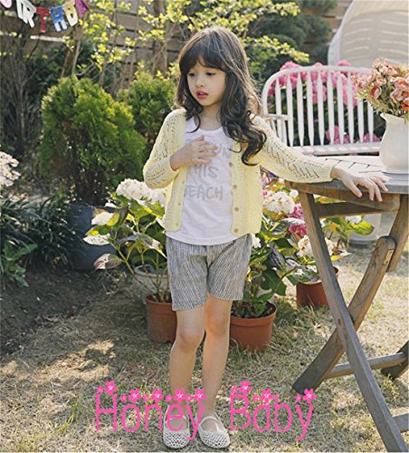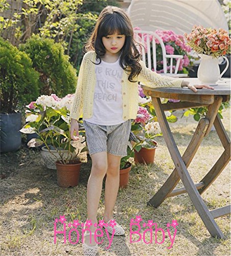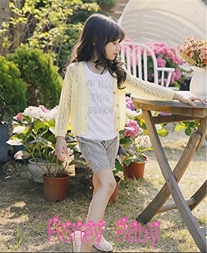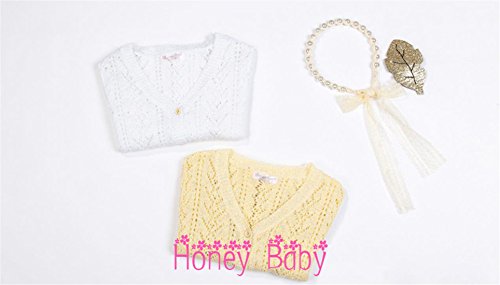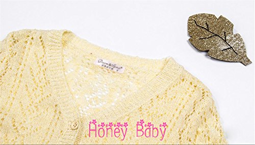 Honey baby 子供服 ボレロ カーディガン 長袖 ニット ボレロフォーマル レース カーディガン 女の子 キッズ 日焼け 冷房 対策 (110cm, イエロー)