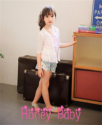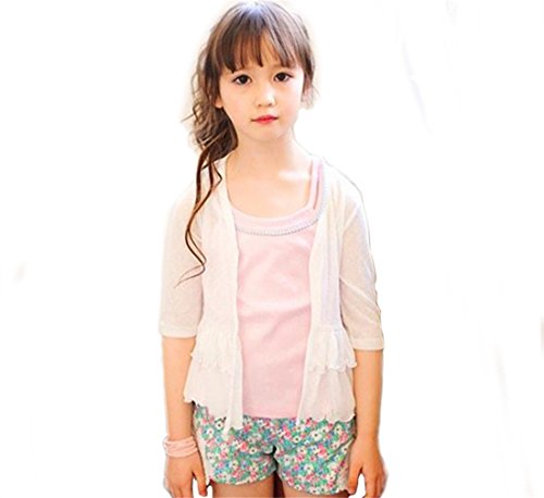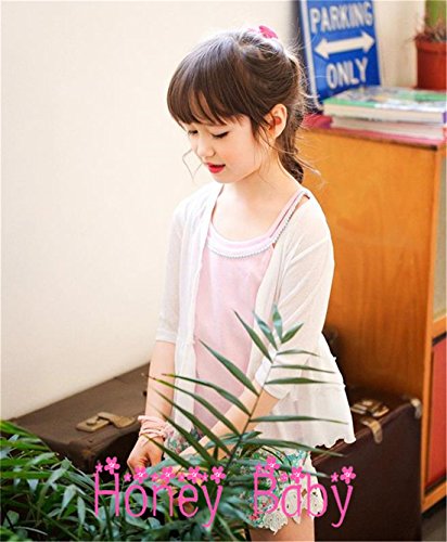 Honey baby 子供服 ボレロ カーディガン 七分袖 ボレロフォーマル 綿 カーディガン シンプル 無地 日焼け 冷房 対策 (140cm, ホワイト)