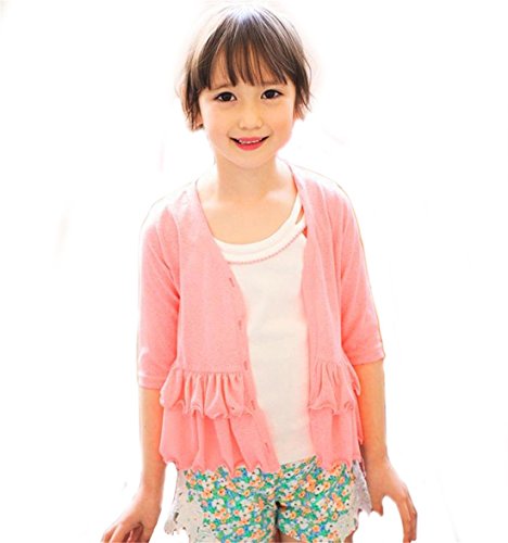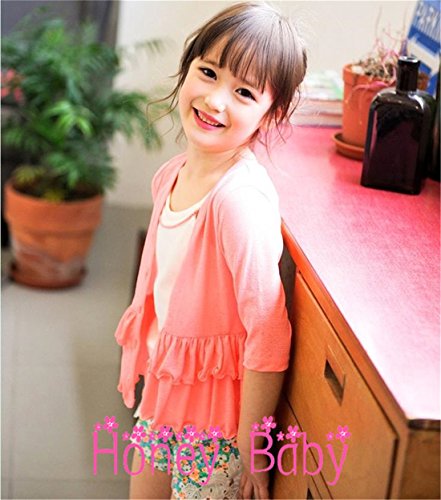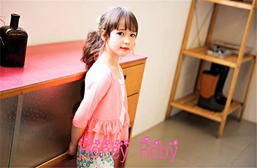 Honey baby 子供服 ボレロ カーディガン 七分袖 ボレロフォーマル 綿 カーディガン シンプル 無地 日焼け 冷房 対策 (140cm, ピンク)