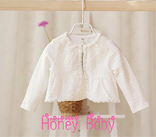 Honey baby 子供用 ガールズ 女の子 ボレロ カーディガン レース パール キッズ フォーマル ドレス 羽織 薄手 子供服 フォーマル子供ドレス ボレロ 綿 発表会 結婚式入園式パーティー 披露宴 コンサート 演奏会 パーティ 誕生会 (60cm, ホワイト)