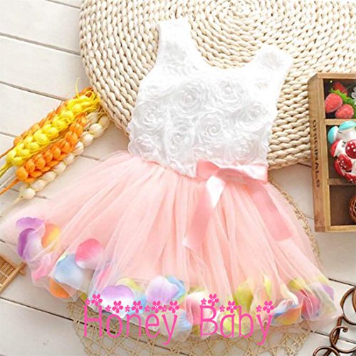 Honey baby ひらひら ベビー キッズ 子供用 ワンピース ドレス ガールズ フォーマル ワンピース フラワードレス 可愛い リボン付き 花柄 写真を撮る 発表会 結婚式 入園式 演奏会 パーティー 春夏 可愛い (100cm, ライトピンク)