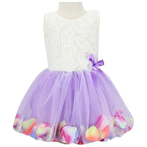 Honey baby ひらひら ベビー キッズ 子供用 ワンピース ドレス ガールズ フォーマル ワンピース フラワードレス 可愛い リボン付き 花柄 写真を撮る 発表会 結婚式 入園式 演奏会 パーティー 春夏 可愛い (120cm, パープル)