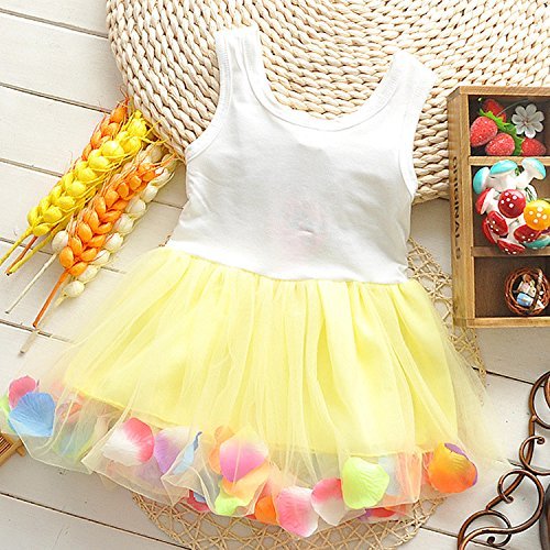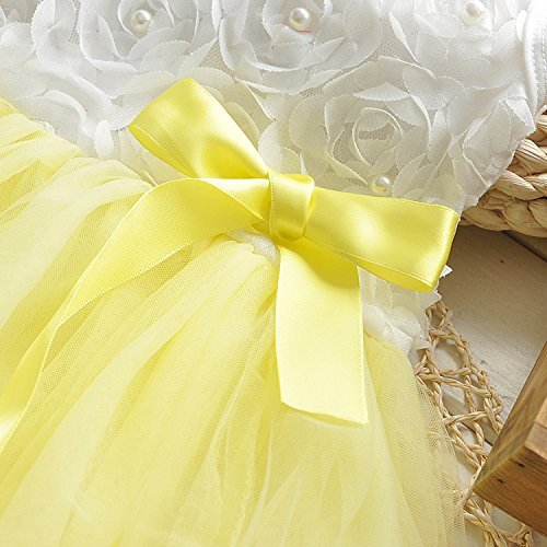 Honey baby ひらひら ベビー キッズ 子供用 ワンピース ドレス ガールズ フォーマル ワンピース フラワードレス 可愛い リボン付き 花柄 写真を撮る 発表会 結婚式 入園式 演奏会 パーティー 春夏 可愛い (110cm, イエロー)