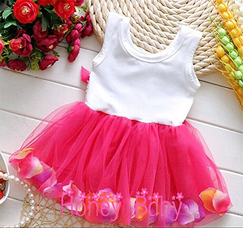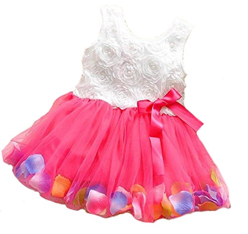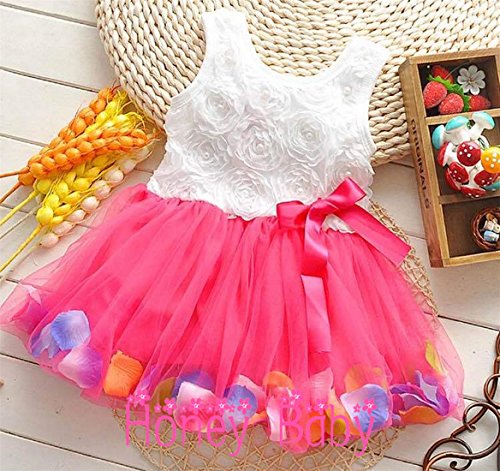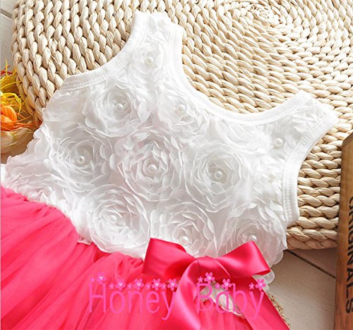 Honey baby ひらひら ベビー キッズ 子供用 ワンピース ドレス ガールズ フォーマル ワンピース フラワードレス 可愛い リボン付き 花柄 写真を撮る 発表会 結婚式 入園式 演奏会 パーティー 春夏 可愛い (110cm, レッド)