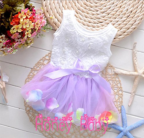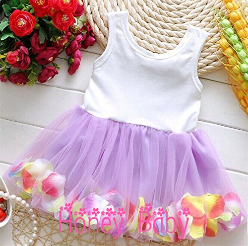 Honey baby ひらひら ベビー キッズ 子供用 ワンピース ドレス ガールズ フォーマル ワンピース フラワードレス 可愛い リボン付き 花柄 写真を撮る 発表会 結婚式 入園式 演奏会 パーティー 春夏 可愛い (100cm, パープル)