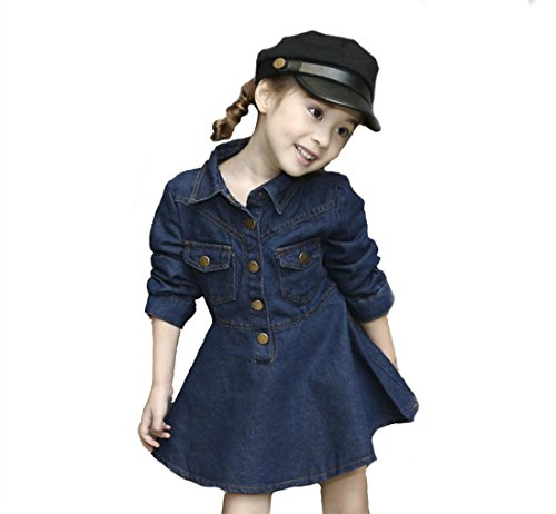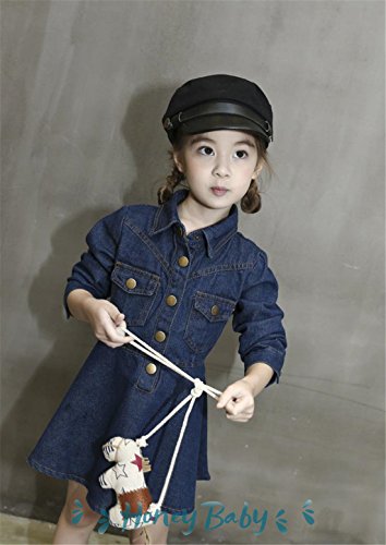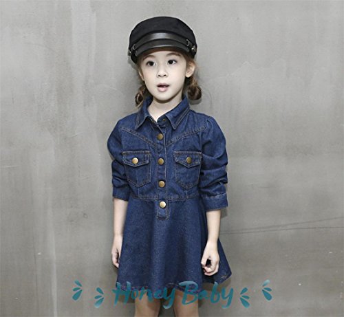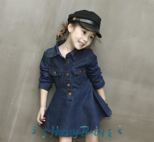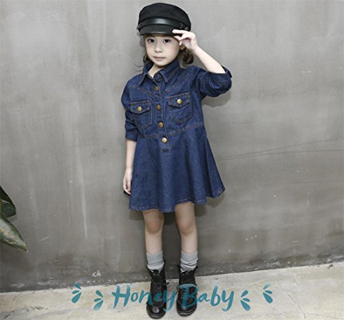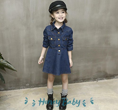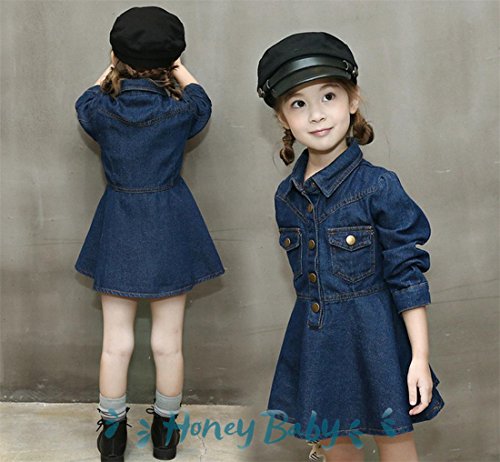 Honey baby 子供服 女の子 キッズ デニムワンピース 可愛い 長袖 デニム シャツ ワンピース シャツワンピース 女児春 秋 入園式 入学式毛 お正月 結婚式 入学式 入園式 卒園式 プレゼント (140cm, ブルー)