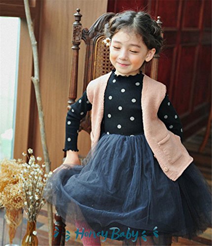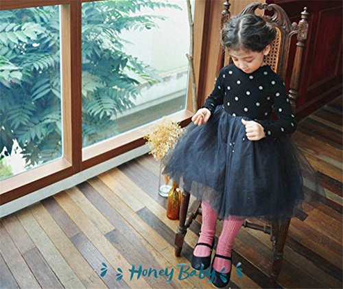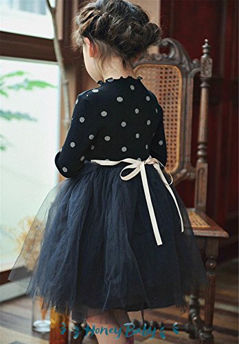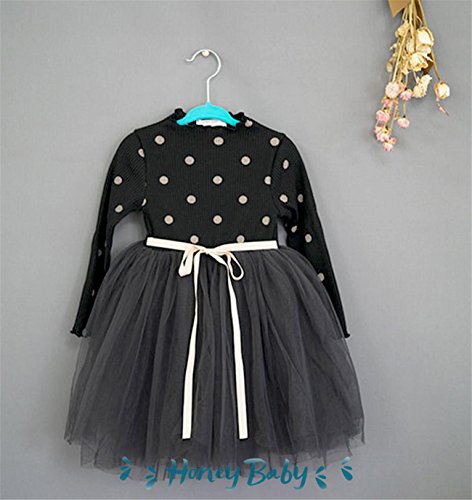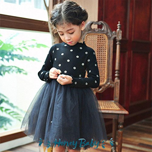 Honey baby 子供服 プリンセスドレス ドット柄 リボンワンピース チュールスカート 長袖 パーティー 入学式 卒園式 卒業式 七五三誕生日 結婚式 ガールズ 韓国風 (110cm, ブラック)