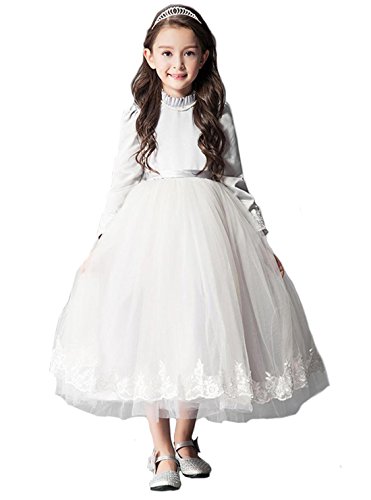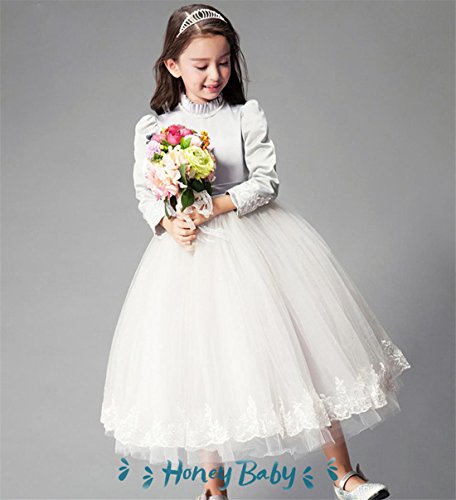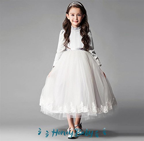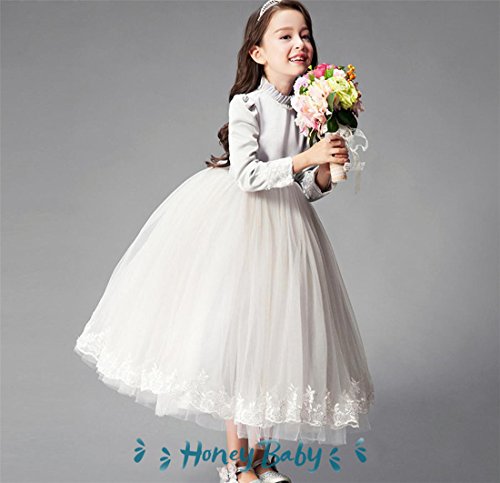 Honey baby 子供服 女の子ドレス 子供フォーマルドレス ロング キッズドレス 七五三 ジュニアドレス 子供 ピアノ発表会 結婚式 入園式 演奏会 パーティー お呼ばれ プリンセスドレス (140cm, ライトグレー)