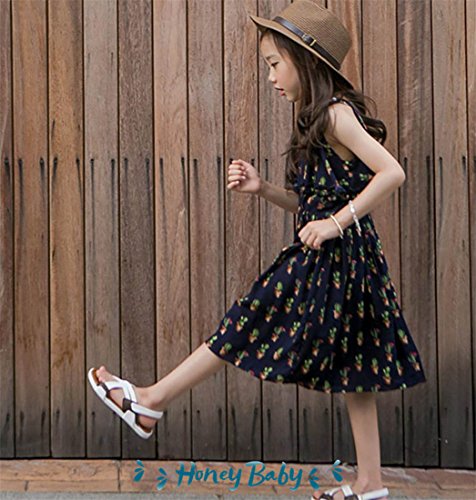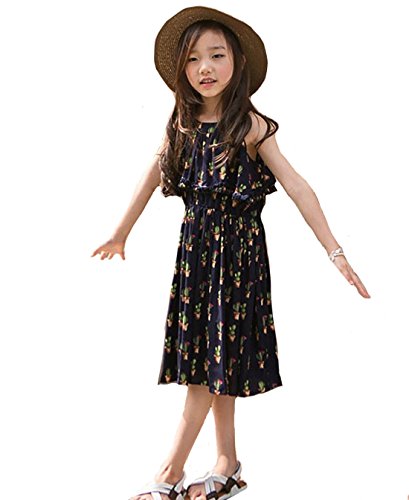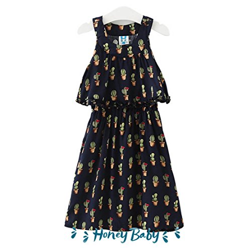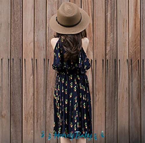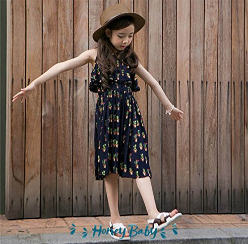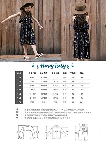Honey baby 女の子ドレス 子供ドレス キッズシフォンドレス 花柄 旅行 ジュニアドレス プリンセス お姫様ドレス パーティー ピアノ発表会 結婚式 夏 (140CM)