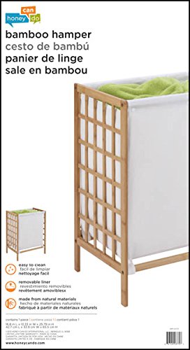 Knockdown Bamboo Hamper, Natural. Complete with a bamboo frame and cloth bag, this hamper looks as good as it is functional. The liner is machine washable and can easily be removed for cleaning. The square pattern on the bamboo frame adds stability and a contemporary flare. Unit assembles quickly and easily.