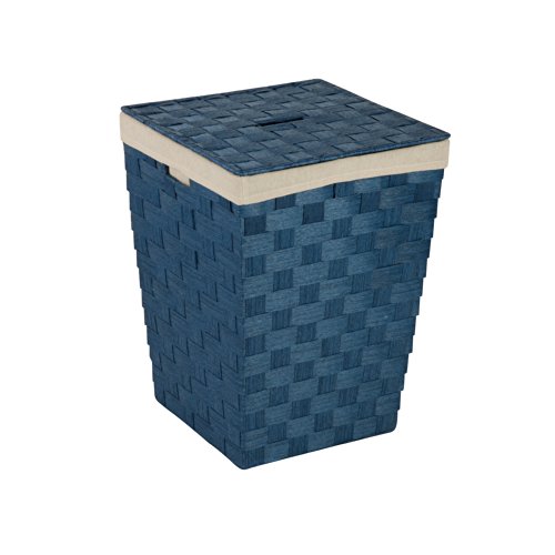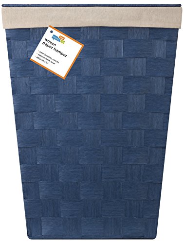 Paper Rope Hamper with Liner, Blue. Keep your laundry in order with this rectangular hamper from Honey-Can-Do. This paper rope hamper features a steel wire frame for extra strength and a modern woven pattern. Includes removable natural cotton liner that is machine washable. Features two cut out handles in the hamper and one in the lid. One of many coordinating paper rope products from Honey-Can-Do.