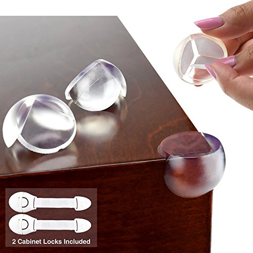 - SET OF 12 CORNER GUARDS & SET OF 2 CABINET LOCKS: Set comes pre-taped for easy installation of the guards, and locks. The bonus cabinet locks are the perfect product to accompany our corner guards. You can now fully baby proof your coffee table, office desk, etc.